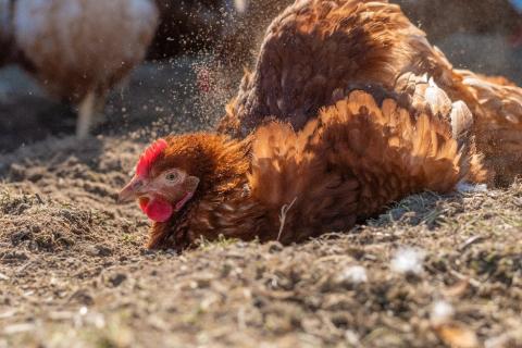 Chickens ranging outside may come into contact with wild birds and their droppings. The avian influenza (AI) virus may spread to the chickens if these wild birds are afflicted with it. While birds of prey are thought to pose a low risk of transmission of the AI virus to poultry, migratory water birds are regarded as the most likely carriers. However, it is not certain if these birds transmit the virus directly to poultry or if intermediate hosts, such as pigeons or rats also play a part. A study investigating the presence of AI risk in birds in and around poultry free-range areas in relation to range vegetation and openness of surrounding landscape revealed that more high-risk birds were observed in free-range areas with less than 5% woody cover, compared to free-range areas with more woody cover. Furthermore, in open landscapes, more high-risk birds were observed in the surroundings of free-range areas than in half-open landscapes. There was no relation found between low-risk birds and woody cover or openness of the landscape.