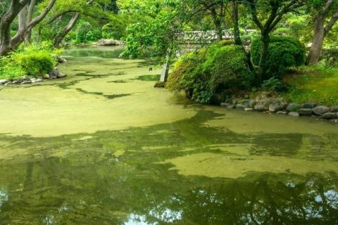 Figure: Eutrophication of a water body due to enrichment of water with N and P in surface runoffs