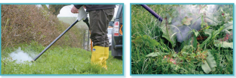 The use of electricity has been proposed as an alternative to the use of chemical herbicides. This either involves electricity being supplied to plants either as spark treatments or through continuous contact. Spark treatment involves electricity passing to the plant at a high voltage for short duration pulses (e.g. 25-60 kV, 1-3 μs) and continuous contact consists of an electrode connected to a high voltage source (e.g. 15 kV, 54 kW). As such, a current flows through the plant and damages plant tissues. A European Innovation Partnership (EIP) Wales project looked into the effectiveness of an electric weeding machine known as RootWave Pro to control docks on two dairy farms in South Wales (Figure. 2). The results of the project demonstrated the electrophysical destruction of the dock plants at three time points to have positive results with regards to dock control and were described to be comparable to the control herbicide treatment. Adoption of this technology has been limited regarding the health and safety of using high voltages and the additional energy required to power such technology. However, with technology evolving and continually developing, the emergence of this technology for use on commercial farms may be more common in the near future.