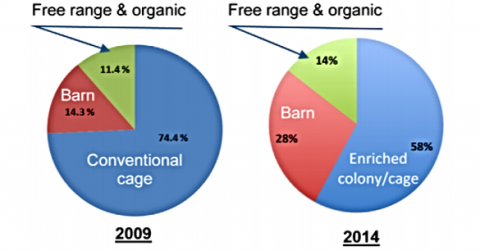 Figure 1. Distribution of EU layer housing systems 2009 and 2014